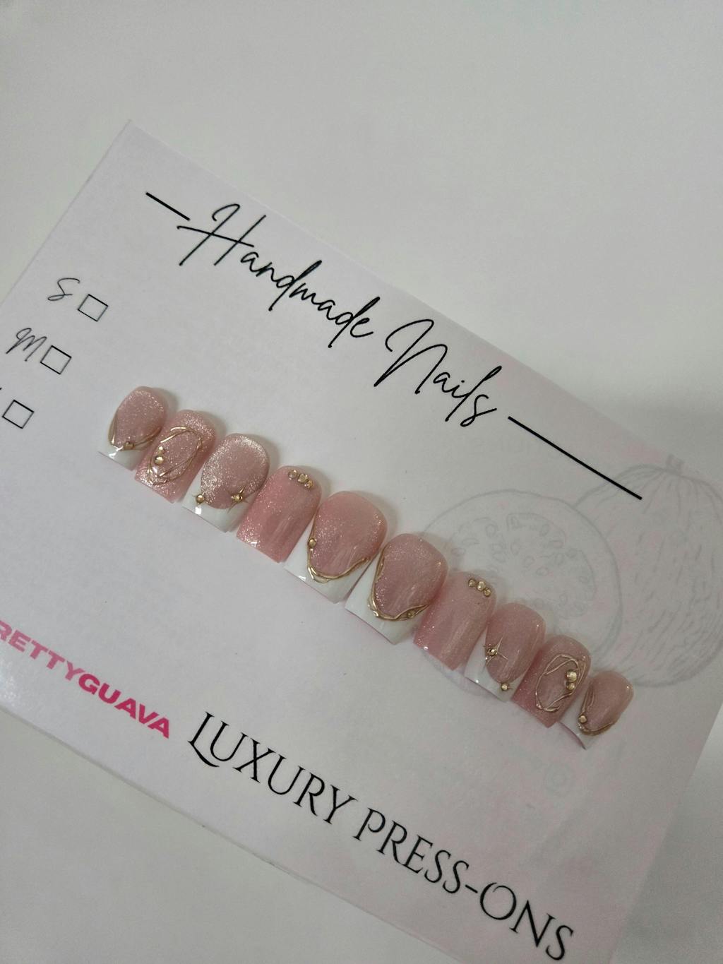 All nails are handmade to order. Because of this, slight variations in color tones, design placement, gold detailing, charms, and overall finish may occur. Screen settings may also cause minor color differences. These variations are normal and part of the beauty of handmade products.